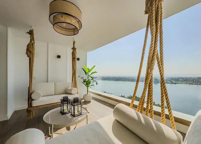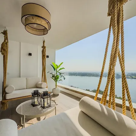 The spacious 210 m² Luxurious Pyramdis & Nile View Appartement Cairo is located approximately 15 km from El Giza train station and about 5 minutes' walk from The District Mall. Guests can make use of Wi-Fi for both business and leisure purposes.
